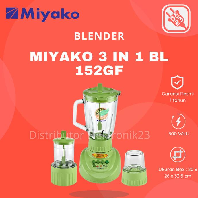 Blender 3 in 1 miyako bl 152 pf ap: Merupakan blender yang terbuat dari bahan plastik berkualitas sehingga tidak mudah rusak. Food grade _____ miyako blender 3 in 1. Blender 3 in 1 miyako bl 152 pf ap: Berbeda dengan blender miyako yang terbuat dari beling atau kaca yang sekali jatuh langsung pecah.